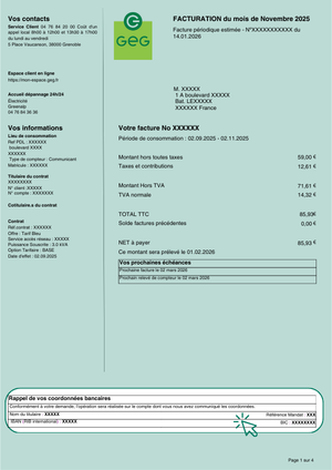 Rubrique « Vos Informations Facturation » - Page 1